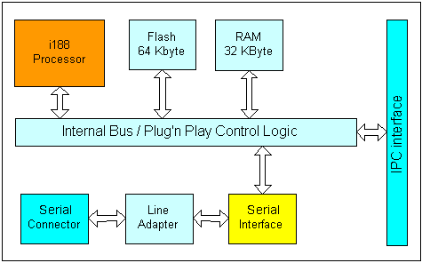 IPC 100 est une carte processeur équipée d'un i188 de Intel. Ce module est idéal pour le contrôle de systèmes à complexité standard. Ce contrôleur est livré avec le micro-code OS Prism. Schéma bloc :
